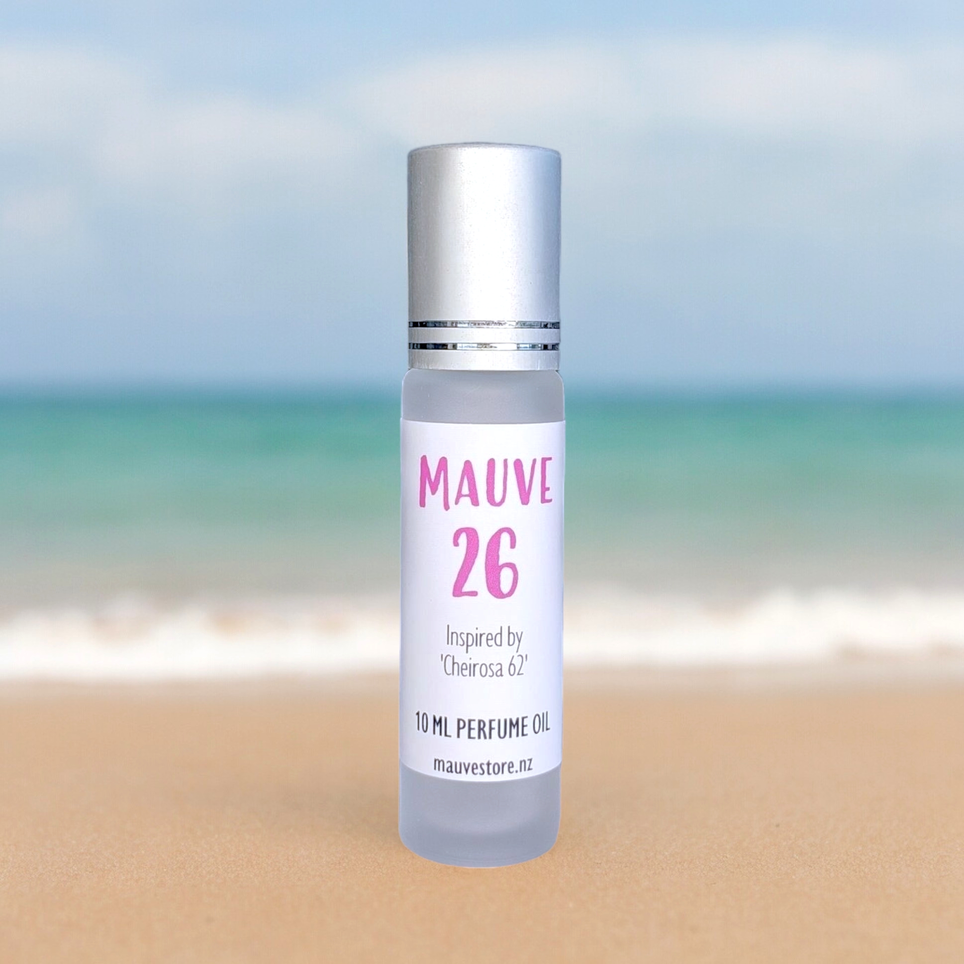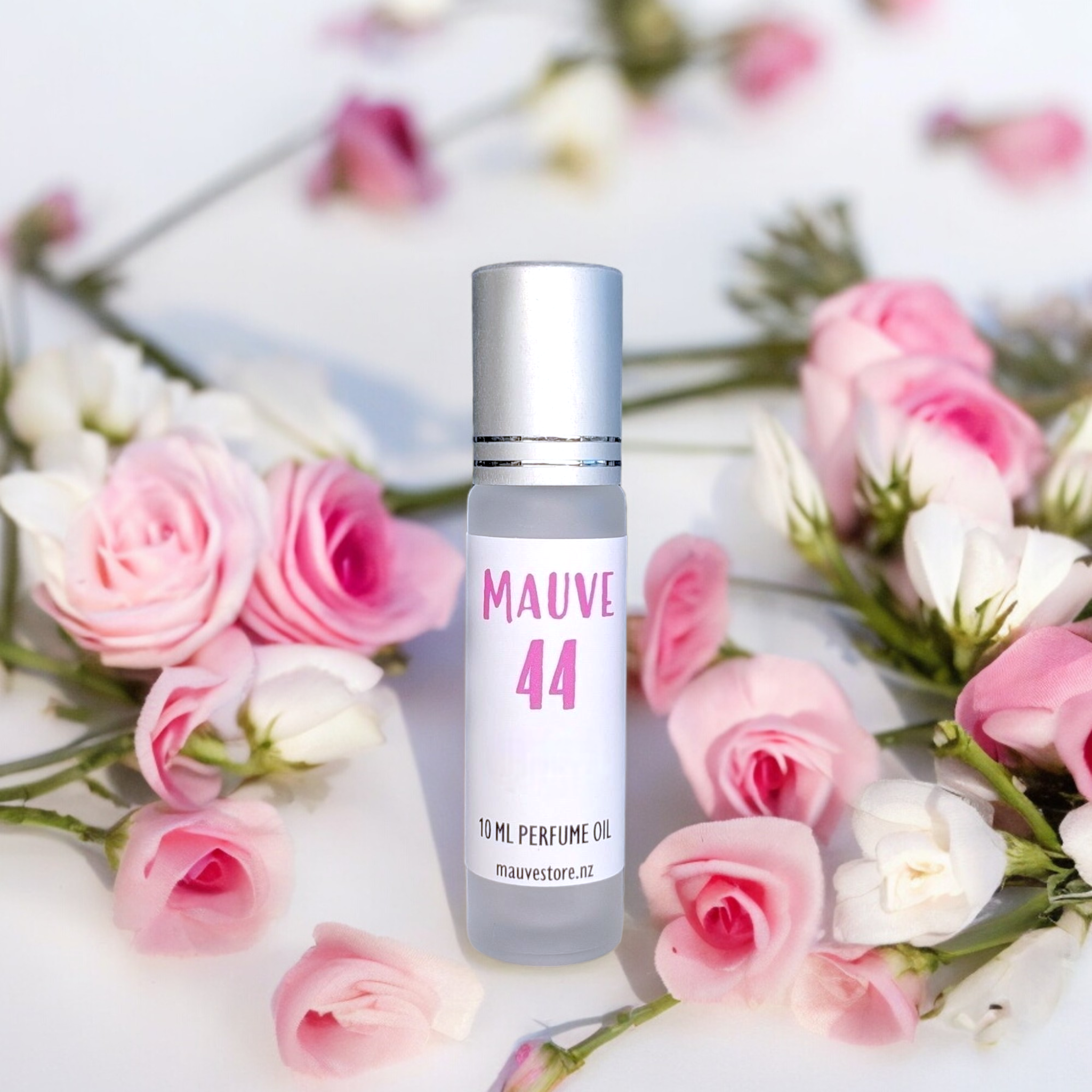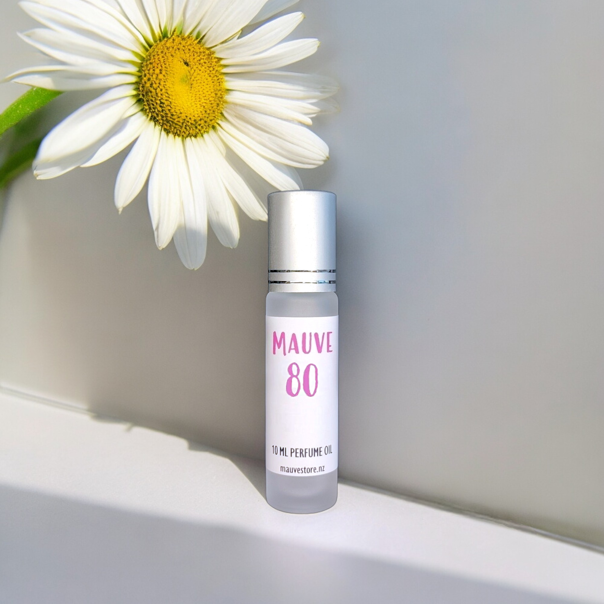 Mauve roll-on perfume oils come in a 10ml frosted glass bottle. They: